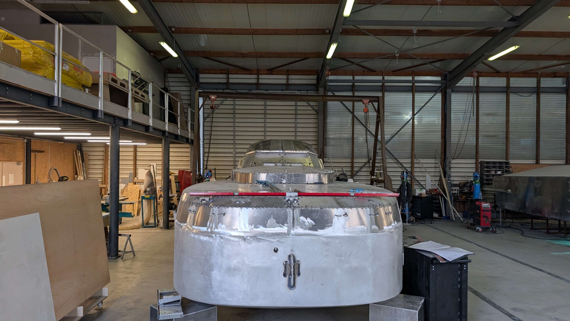 Sous les lumières claires de l’atelier, l’aluminium brut prend peu à peu la forme d’un voilier hors norme. Le Sea-Scow 33’ est en pleine gestation, et chaque semaine apporte son lot de métamorphoses. L’ambiance sur le chantier est à la fois studieuse et animée, rythmée par le son des outils et la précision des gestes.